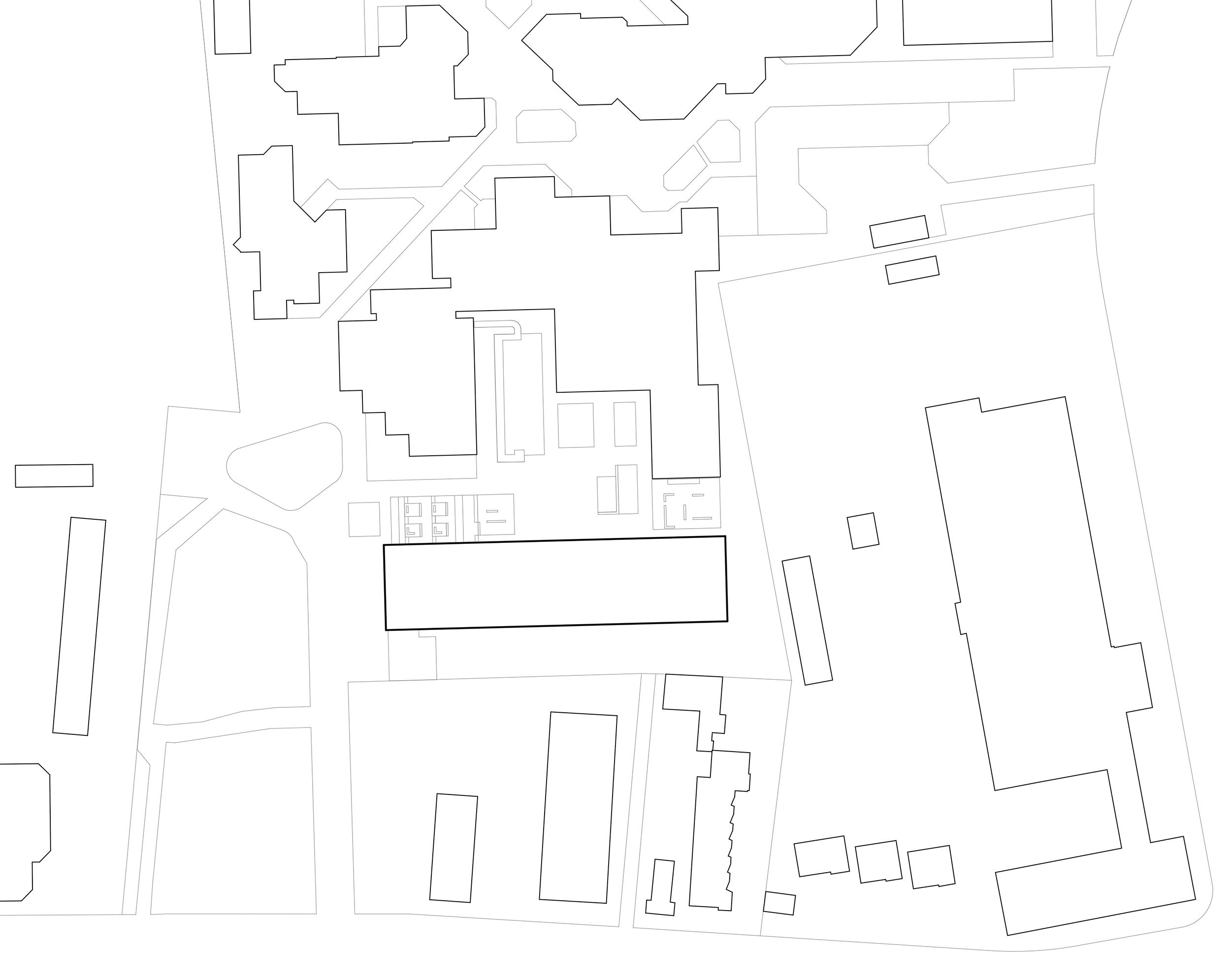Mit seiner klaren Kubatur und seiner Positionierung bildet der viergeschossige, zum Teil in den Hang eingelassene Neubau einen städtebaulichen Auftakt an der Zufahrtsstrasse, dem Campusboulevard, und zugleich den südlichen Abschluss des Campus‘. Zusammen mit den bestehenden Hochschulgebäuden umrahmt das LLZ einen Innenhof, den sogenannten Lernhof. Dessen zentrales Element ist eine Treppe unter einem Baumkronendach, die mit ihren Sitzgelegenheiten einen sonnengeschützten Raum für gemeinsamen Austausch bietet.