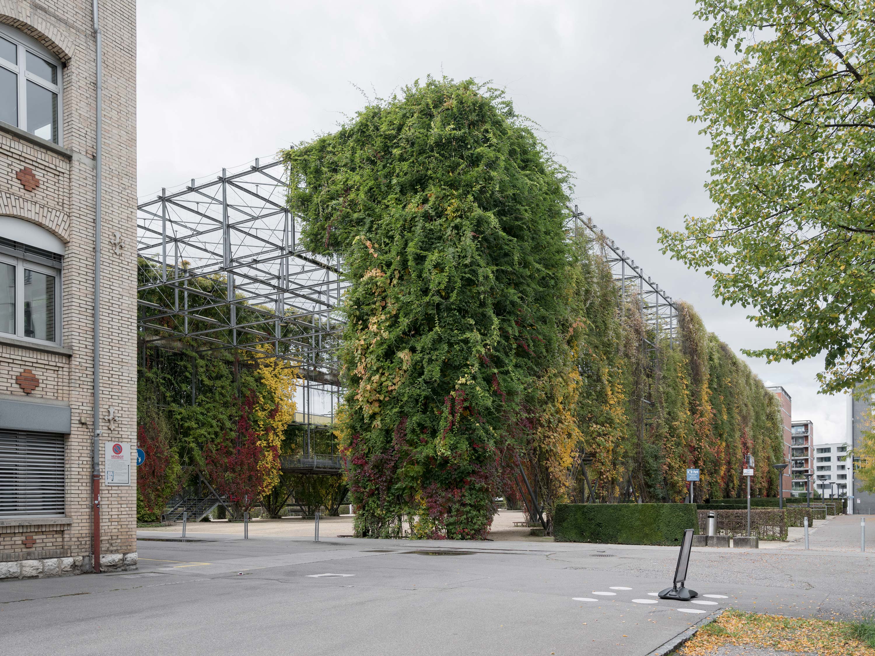 Nach hundert Jahren hat die Maschinenfabrik Oerlikon (MFO) ausgedient. Auf dem Gelände im Norden von Zürich steht heute eine riesige, öffentliche Gartenlaube inmitten eines verdichteten Stadtquartiers. Burckhardt entwarf gemeinsam mit Raderschall Landschaftsarchitekten das einzigartige «Park-Haus», das die Dimensionen der ehemaligen Fabrikgebäude aufnimmt.